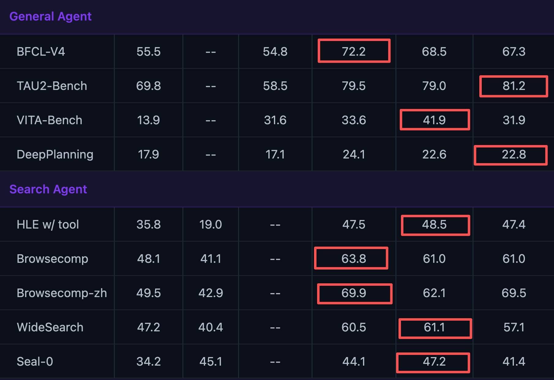 在通用智能体维度,Qwen3.5系列呈“梯队式上风”,在BFCL-V4(通用智能体用具使用能力)、TAU2-Bench(智能体任务践诺与适配能力)、DeepPlanning(智能体深度策画与逻辑推演能力)等多项测评中获得最好获利。在搜索智能体维度,Qwen3.5-122B-A10B主导英文/汉文浏览检索,Qwen3.5-27B包揽复杂推理与详尽搜索最高分。