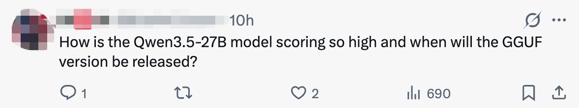Qwen3.5-27B的模子参数更小,也作念到了“小范畴强性能”。一位网友称:“Qwen3.5-27B型号的得分为怎么此之高?GGUF版块何时发布?”另一位网友也称:“这次发布太棒了!我对27B参数模子十分感酷好,不外以后你们能不可把GGUF模子也和主版块扫数发布?这样用户就能更快地用上这个模子。”