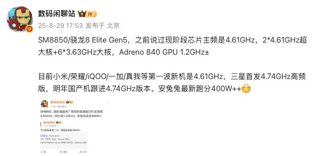 而是告成跳到骁龙 8 Elite Gen 5,骁龙 8 至尊版五代。
