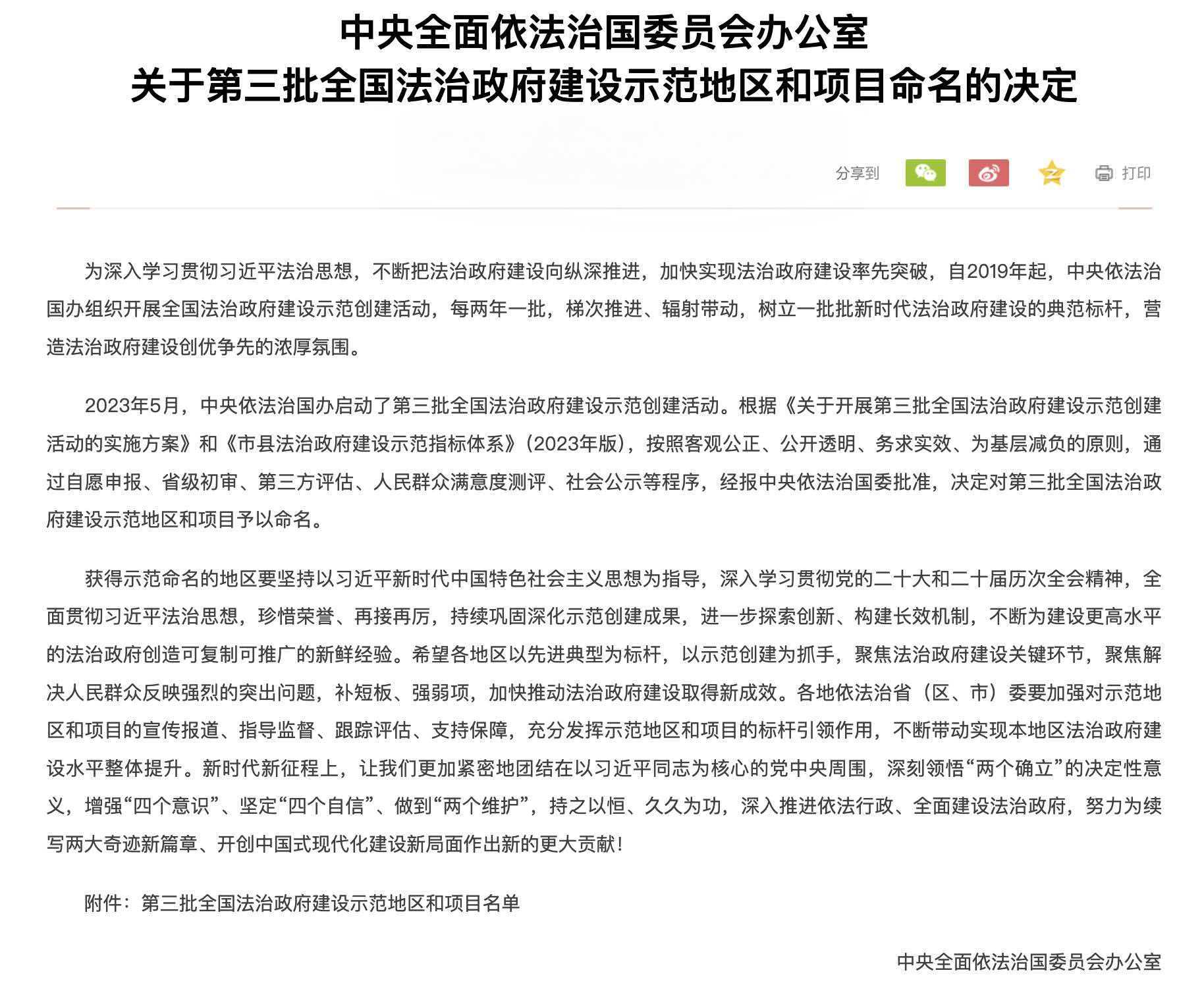 近日,中央全面照章治国委员会办公室发布《对于第三批全王法治政府斥地示范地区和花式定名的决定》,其中广东7地区(花式)入选。
